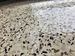 A marbled solid-color epoxy floor is a floor covering made of epoxy resin that is applied in layers to create a marble effect, using solid colors or shades instead of the typical marbled veining. This type of flooring offers a luxurious, durable appearance that is ideal for commercial and industrial spaces.